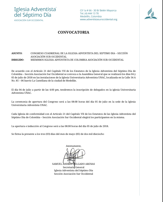 Convocatoria Oficial a Nuestro Congreso Cuadrienal